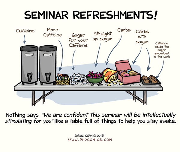 The truth is that everybody knows the academic people sometimes do not have a sense of humor. They are too serious to talk about anything. If you ask me, my question will be “Could I bring the rest food back to my Ph.D. cubicle?”