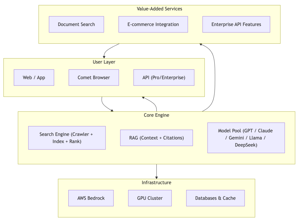 | Products | Google Search with SGE/AI Overview | Perplexity Web/App, Comet Browser |