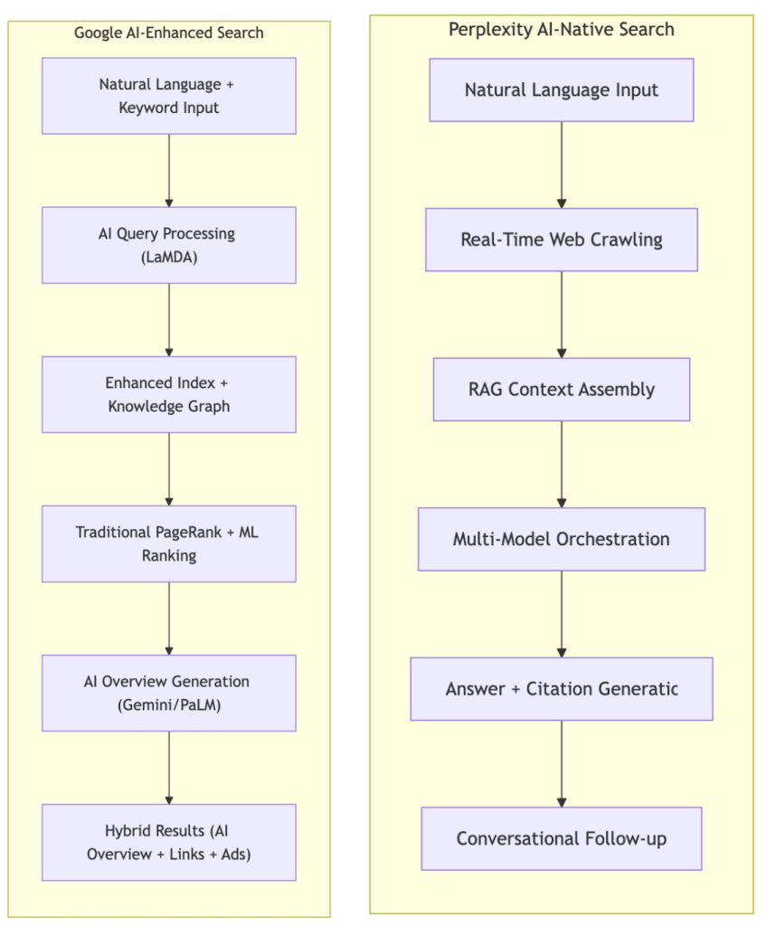 | Dimension | Google AI-Enhanced Search | Perplexity AI-Native Search |
