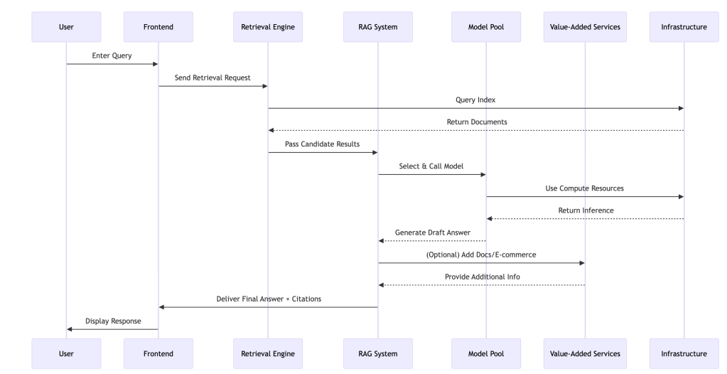 - Answer Generation: Selected model(s) generate comprehensive responses using retrieved context