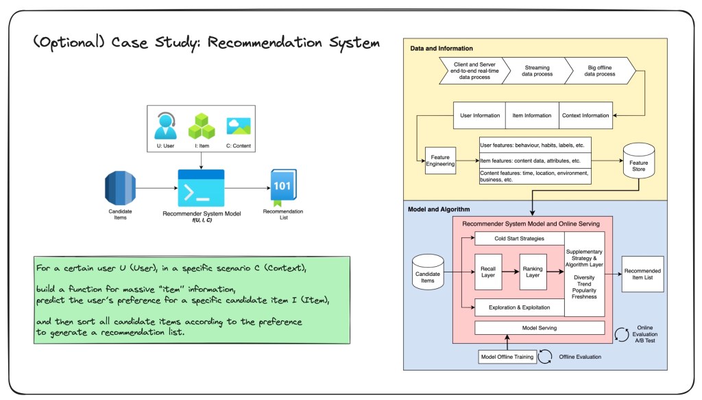 A recommendation system is an artificial intelligence or AI algorithm, usually associated with machine learning, that uses Big Data to suggest or recommend additional products to consumers. These can be based on various criteria, including past purchases, search history, demographic information, and other factors.