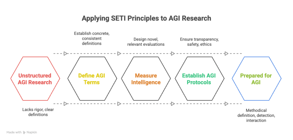 Establishing Rigorous Protocols for AGI Detection and Interaction (Astrobiology/SETI Perspective): Edmon Begoli and Amir Sadovnik suggest that research into Artificial General Intelligence (AGI) can draw methodological lessons from the Search for Extraterrestrial Intelligence (SETI). They advocate for a structured scientific approach to AGI that includes: