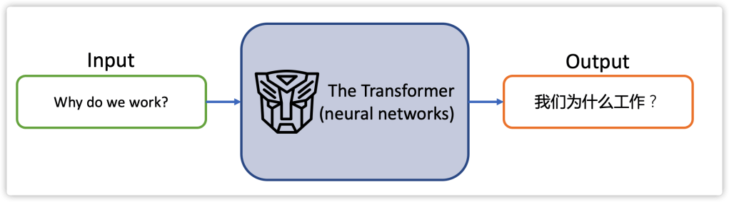 Let’s look at the Transformer model as a single black box. In a machine translation application, it would take a sentence in one language, and output its translation in another.
